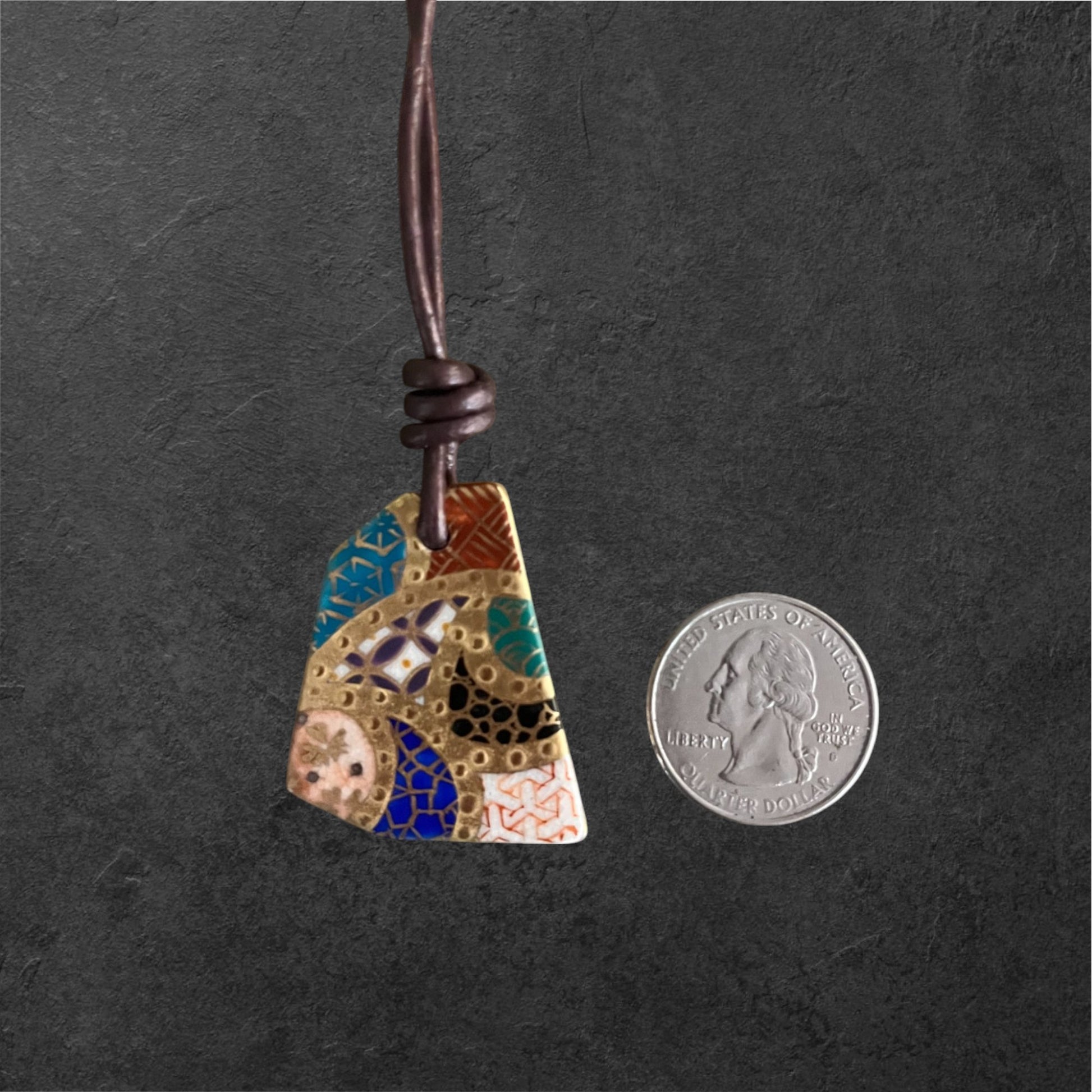 HANDPAINTED WITH 24 KARAT GOLD GLAZE: Embrace the beauty of traditional Japanese artistry with these unique pendants. Each porcelain piece is meticulously hand-painted without templates or stencils, resulting in a truly one-of-a-kind piece. The exquisite double-sided designs offer captivating versatility. It comes with an adjustable dark brown leather cord.