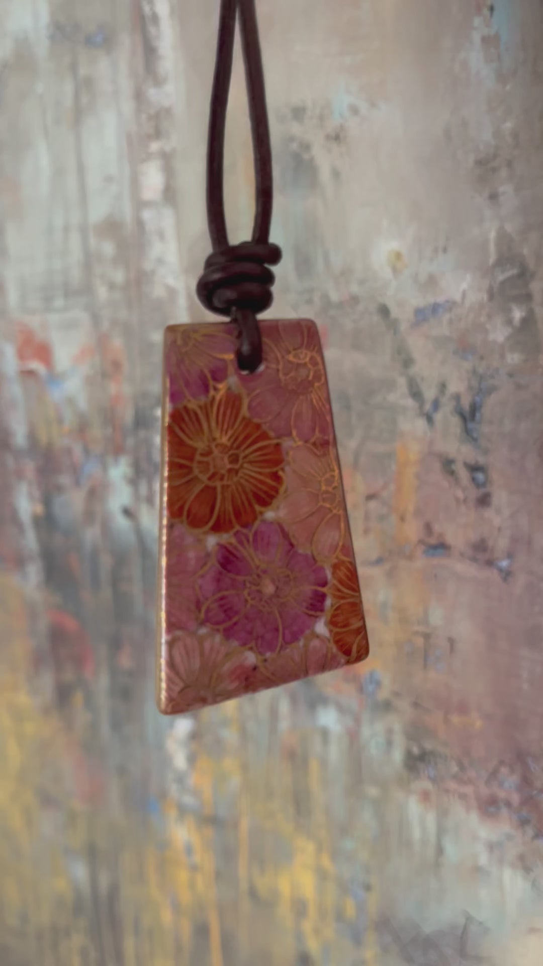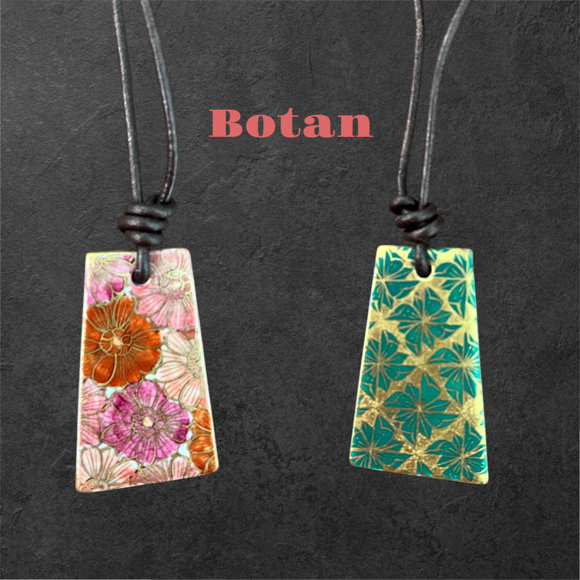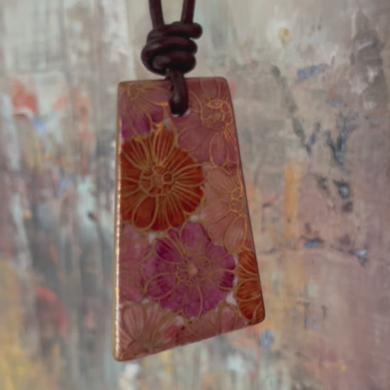 Hand-painted Reversible Japanese Ceramic Necklace: Botan