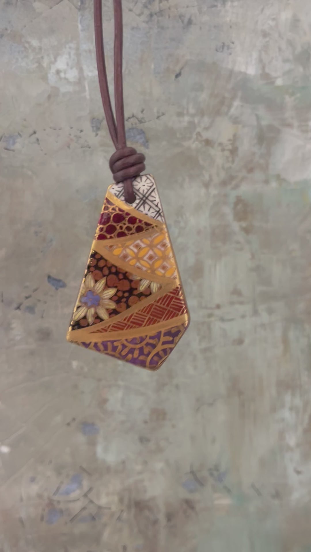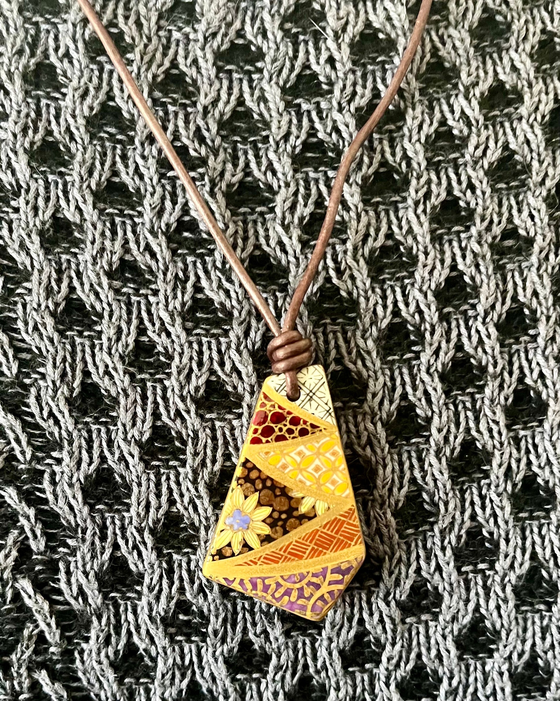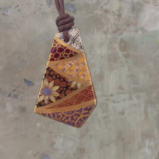 HANDPAINTED WITH 24 KARAT GOLD GLAZE: Embrace the beauty of traditional Japanese artistry with these unique pendants. Each porcelain piece is meticulously hand-painted without templates or stencils, resulting in a truly one-of-a-kind piece. The exquisite double-sided designs offer captivating versatility. It comes with an adjustable dark brown leather cord.
