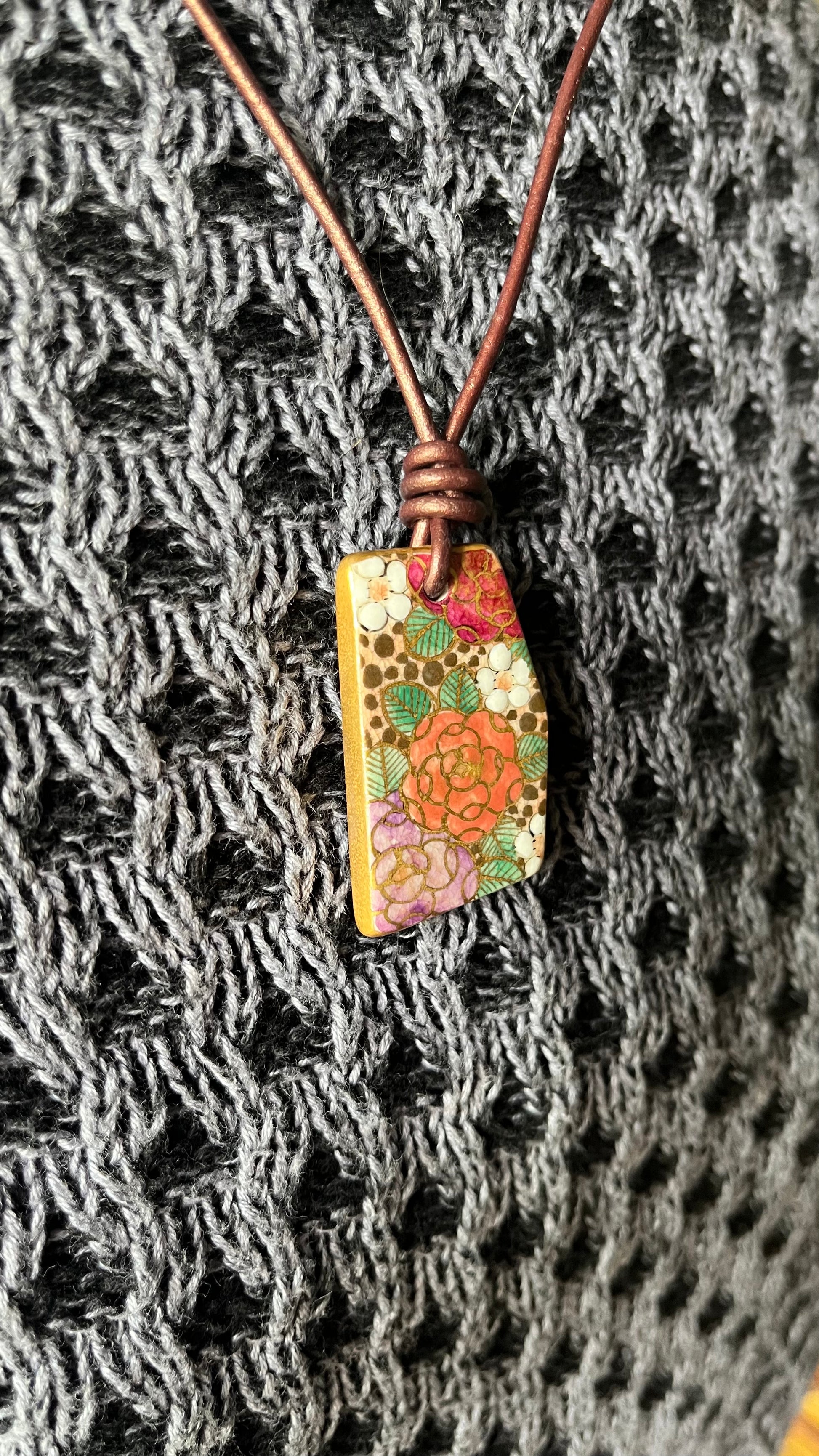 Hand-painted Reversible Japanese Ceramic Necklace: Okurimono
