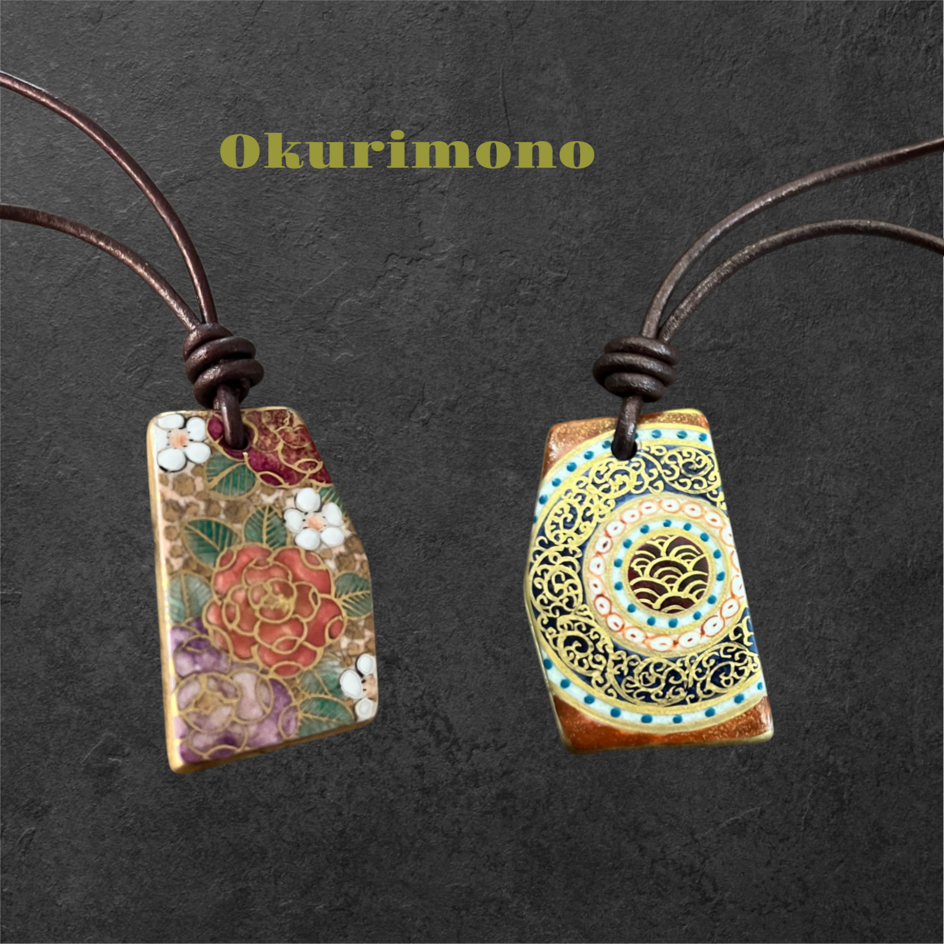 HANDPAINTED WITH 24 KARAT GOLD GLAZE: Embrace the beauty of traditional Japanese artistry with these unique pendants. Each porcelain piece is meticulously hand-painted without templates or stencils, resulting in a truly one-of-a-kind piece. The exquisite double-sided designs offer captivating versatility. It comes with an adjustable dark brown leather cord.