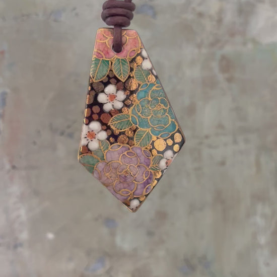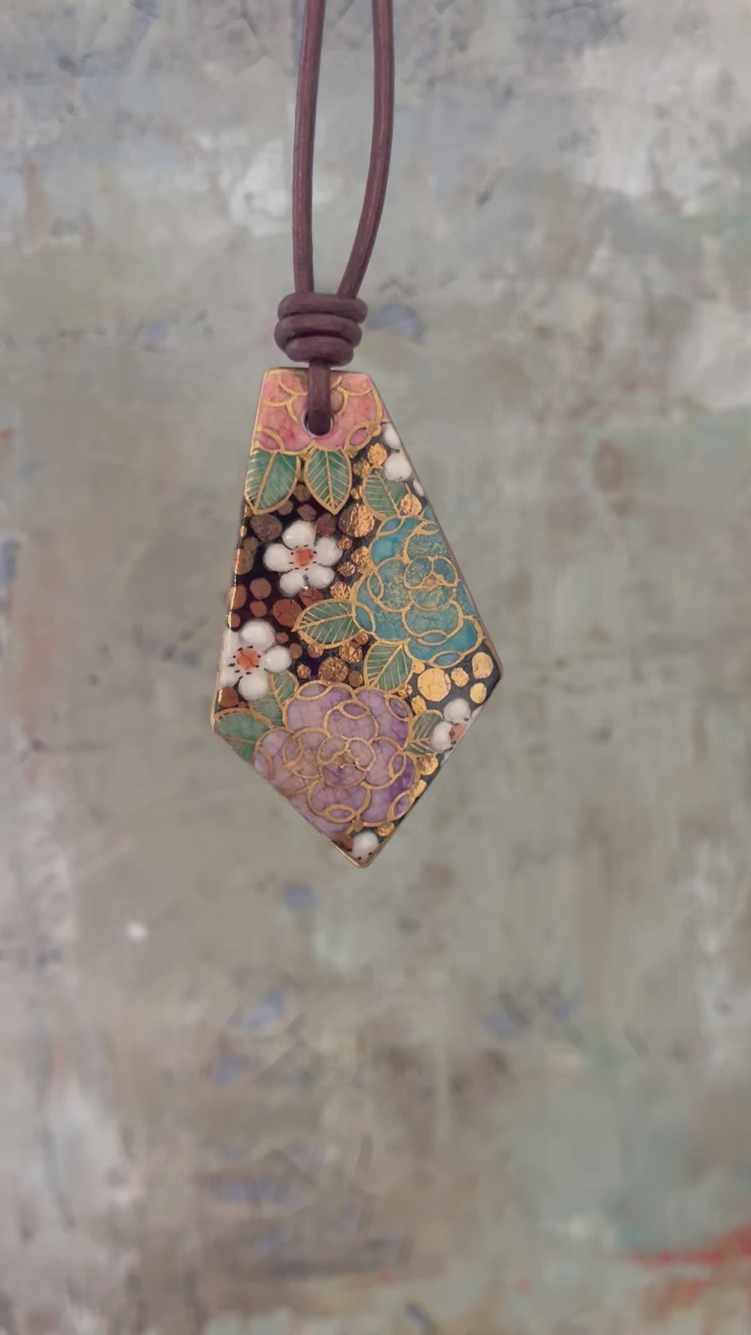 HANDPAINTED WITH 24 KARAT GOLD GLAZE: Embrace the beauty of traditional Japanese artistry with these unique pendants. Each porcelain piece is meticulously hand-painted without templates or stencils, resulting in a truly one-of-a-kind piece. The exquisite double-sided designs offer captivating versatility. It comes with an adjustable dark brown leather cord.