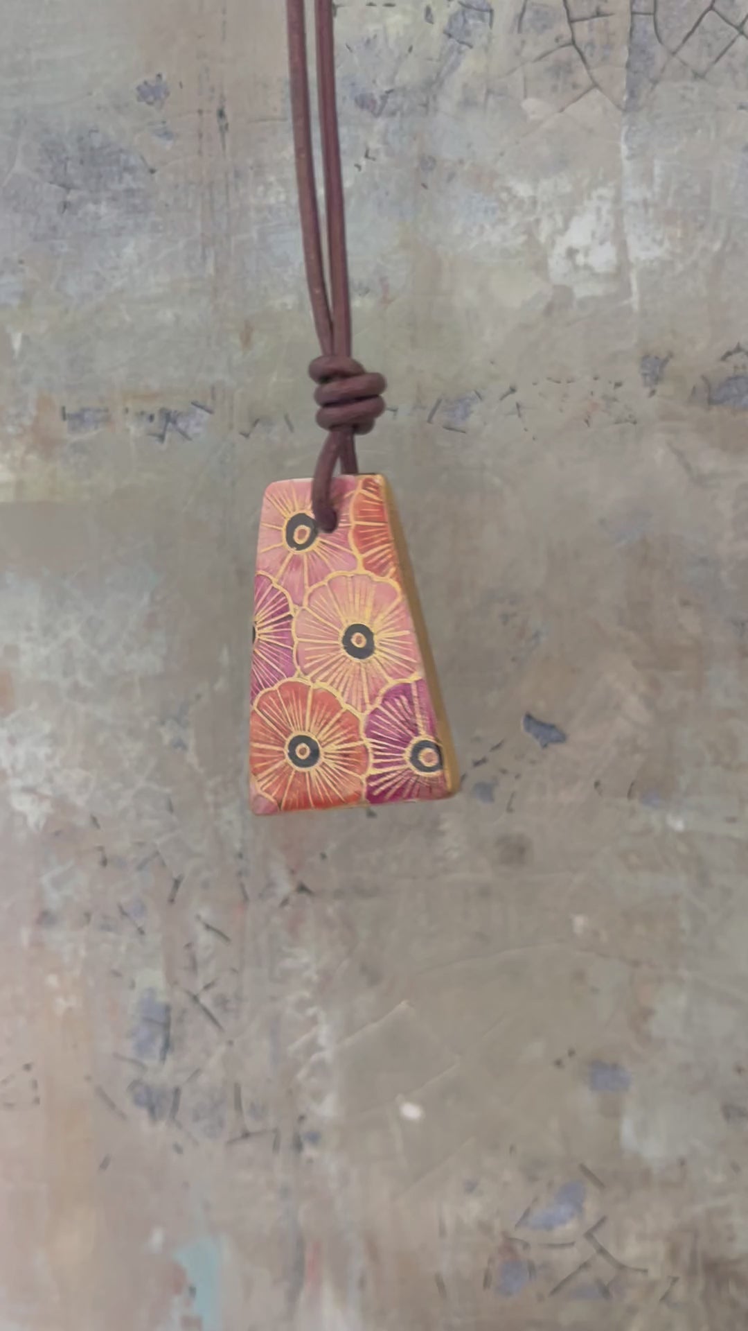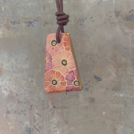 Hand-painted Reversible Japanese Ceramic Necklace: Tsutsuji