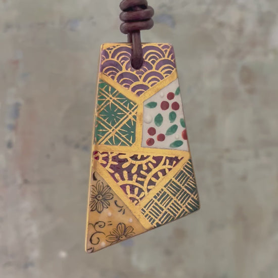 Hand-painted Reversible Japanese Ceramic Necklace: Yume