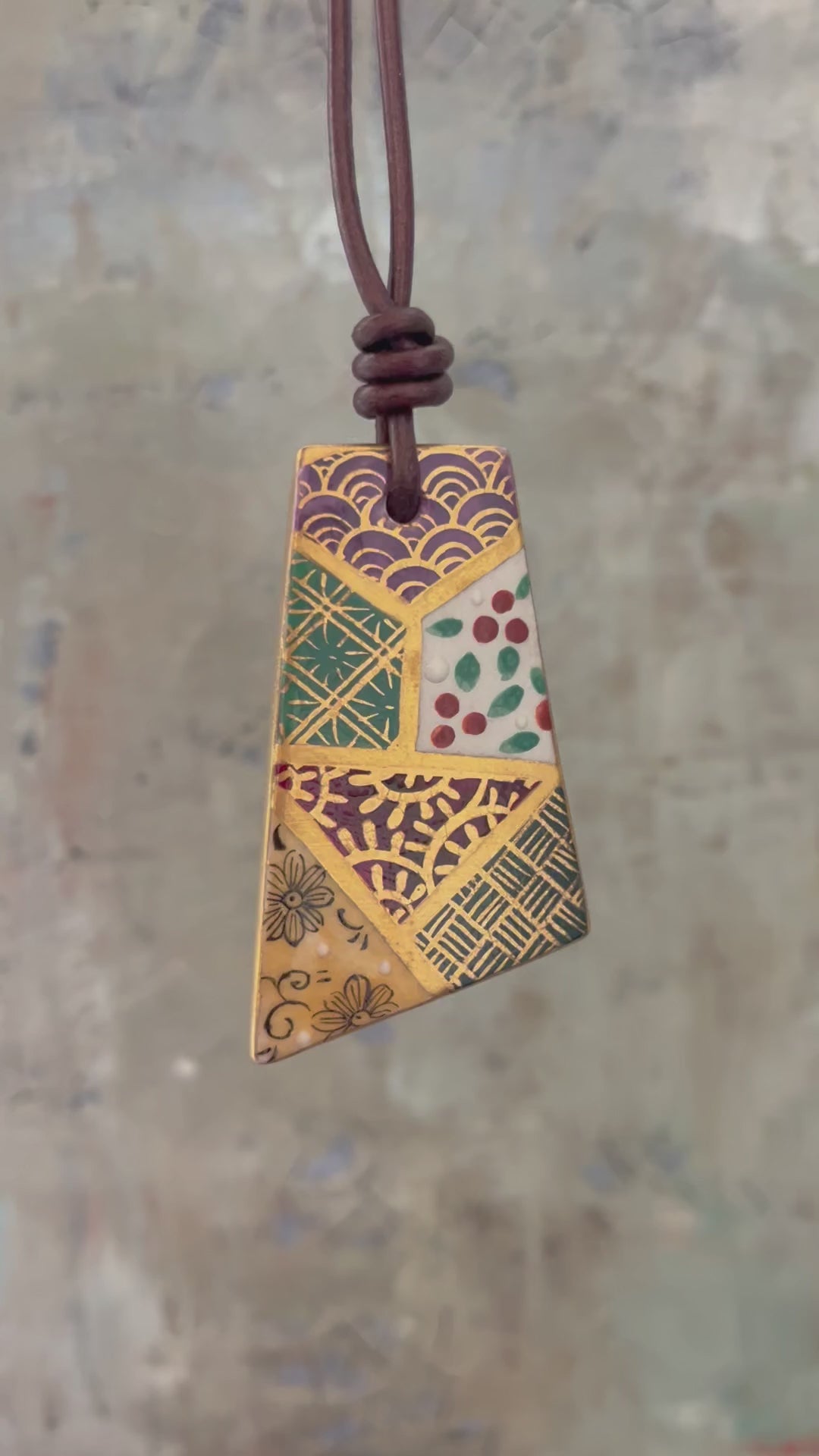 HANDPAINTED WITH 24 KARAT GOLD GLAZE: Embrace the beauty of traditional Japanese artistry with these unique pendants. Each porcelain piece is meticulously hand-painted without templates or stencils, resulting in a truly one-of-a-kind piece. The exquisite double-sided designs offer captivating versatility. It comes with an adjustable dark brown leather cord.